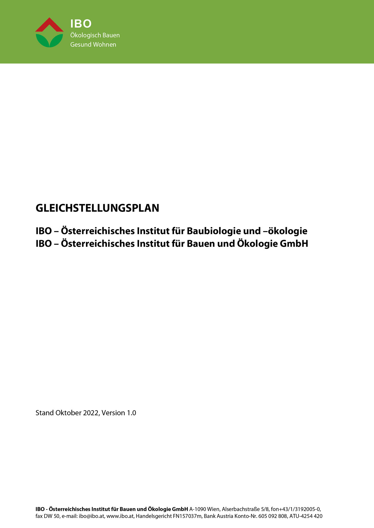 Für Einreichungen von EU-Forschungsprojekten ist künftig das Vorlegen eines Gleichstellungsplanes, auch Gender Equality Plan (GEP) genannt, nötig. Daher wurde beschlossen, bis Herbst 2022 einen solchen für das IBO zu erstellen. „IBO“ bezieht sich in diesem Dokument sowohl auf den Verein IBO – Österreichisches Institut für Baubiologie und -ökologie als auch die IBO – Österreichisches Institut für Bauen und Ökologie GmbH.