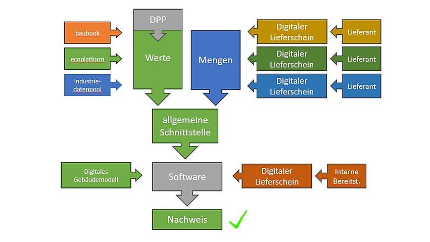Die Nachweisführung ökologischer Kennwerte ist grundsätzlich auch für KMU im Gewerbe handhabbar, erfordert jedoch die Zusammenarbeit von Herstellern, Baustoffhändlern und Verarbeitern. Denn die benötigten Informationen für die Nachhaltigkeitsberechnungen sind bereits über verschiedenen Quellen verteilt vorhanden. In dem, vom Bau.Energie.Umwelt Cluster initiieren, Projekt werden Unternehmen aus Baugewerbe, Bauindustrie und Baustoffhandel die digitale Nachweisführung von bauprojektbezogenen Nachhaltigkeitskennwerten kennenlernen und implementieren.