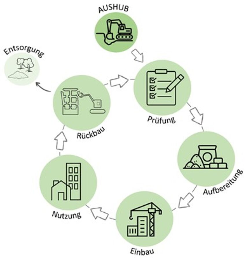 Fragestellungen sind unter anderem, wie der Aushub in Abhängigkeit von der künftigen Nutzung effizient aufbereitet werden kann, welche Anlagen aus der konventionellen Bauweise übernommen werden können und welche ökologischen Effekte erwartbar sind. Ebenso wird eine Prüfstrategie unter Berücksichtigung vorhandener Regelwerke und Normen sowohl für den Aushub als auch für die hergestellten Lehmprodukte ausgearbeitet. Für die tatsächliche Umsetzung einer Vor-Ort-Produktion werden im Projekt neue Kooperationsmodelle zwischen den am Planungs- und Bauprozess beteiligten Parteien wie die integrierte Projektabwicklung oder Allianzmodelle entwickelt und dargestellt.