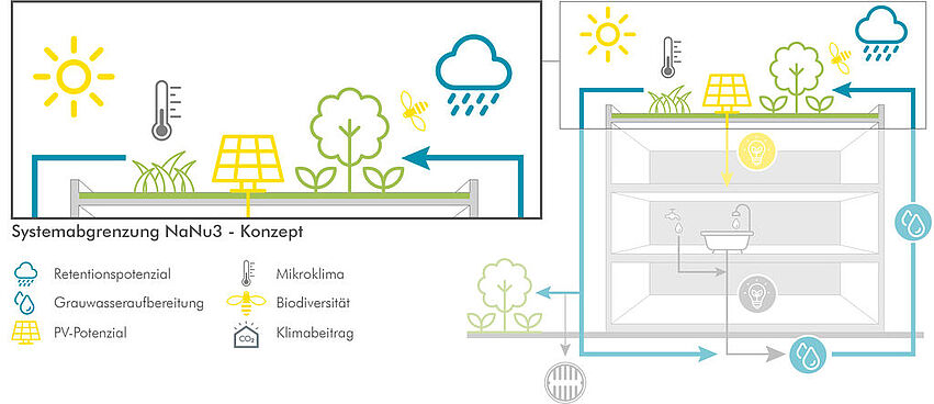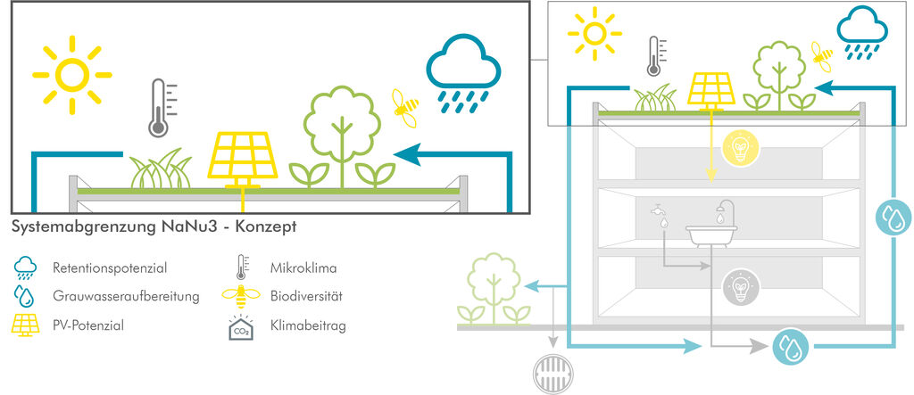 Um eine Stadt lebenswert und nachhaltig zu gestalten, müssen Anpassungsmaßnahmen an den Klimawandel mitgedacht werden. Eine Maßnahme, um der Aufheizung von urbanen Gebieten zu begegnen, sind Dach- und Fassadenbegrünungen. Gleichzeitig ist auch mit verstärktem Auftreten von (sehr) lokalen Starkniederschlagsereignissen zu rechnen. Somit müssen gebäudegebundene Begrünungsmaßnahmen mit Hitze und damit einhergehenden Trockenperioden als auch zeitweise mit einem zu großen als auch mit einem zu kleinen Wasserangebot zurechtkommen.