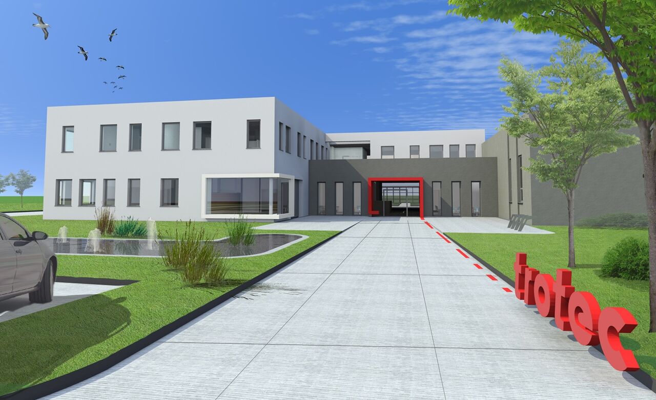 Beim Neubau des Trotec Bürogebäudes in Marchtrenk wurde auf eine ganzheitliche Energielösung geachtet: hoher Dämmstandard der Gebäudehülle gekoppelt mit einer ausgeklügelten Kombination von energieeffizienten Haustechnikkomponenten und zugehörigen sinnvollen Speichermedien schaffen einen regenerativen Energieanteil von bis zu 86 %. Die restlichen 14 % Strombedarf können über eine PV Anlage gedeckt werden. Das Energiekonzept ist grundsätzlich für das Bürogebäude und den Produktionsbereich ausgelegt, Sole- und Grundwasser-Wärmepumpenanlage bilden die primären und sekundären Wärmeerzeuger, unterstützt durch eine großzügig angelegte thermische Solaranlage. Die Solarerträge werden in unterschiedlichen Puffermedien gespeichert. Ein ausgeklügeltes Energiemanagementsystem ist für die stufenweise Abladung der Solarenergie verantwortlich. Hohe Temperaturen werden über einen 1000 l Pufferspeicher für die Warmwasserbereitung und einen 2000 l Speicher für Heizzwecke verwendet. Mittlere Temperaturen werden in einem 270 m³ großes Löschwasserbecken gespeichert und ebenfalls für Heizzwecke und für den Erdspeicher verwendet, niedere Temperaturen werden direkt in den Erdspeicher, der 15 cm unter der Fußbodenplatte verlegt ist, eingespeist. Somit ist eine Energieversorgung für Heizen – Kühlen – Lüften weitgehend mit regenerativen Energien möglich. |