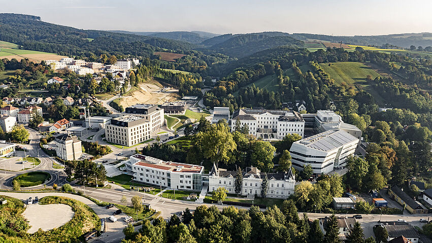 Die tragenden Außen- bzw. Innenwände sowie die Decken werden in Stahlbeton ausgeführt – mit Ausnahme einer Decke im EG, die als Leichtbaukonstruktion realisiert wird. Die nichttragenden Zwischenwände werden in Trockenbauweise bzw. mit Systemtrennwänden errichtet. In der Bibliothek, der Graduate School, den Gängen im Laborbereich sowie unter den auskragenden Terrassen werden Akustikelemente eingebaut. Die Fenster und Verglasungen werden in Aluminiumkonstruktion mit Dreifachwärmeschutzverglasung realisiert. Sämtliche transparente Bauteile sind mit außenliegender Verschattung (Raffstores) versehen. Schwerkraftnachtlüftung ist im Sommer für die Bibliothek und Gradschool durch eine ausreichende Anzahl und Größe an automatisiert ansteuerbaren Öffnungsflügeln gewährleistet, zusätzlich wird das gesamte Gebäude über eine Lüftungsanlage mit hocheffizienter Wärmerückgewinnung mechanisch be- und entlüftet.