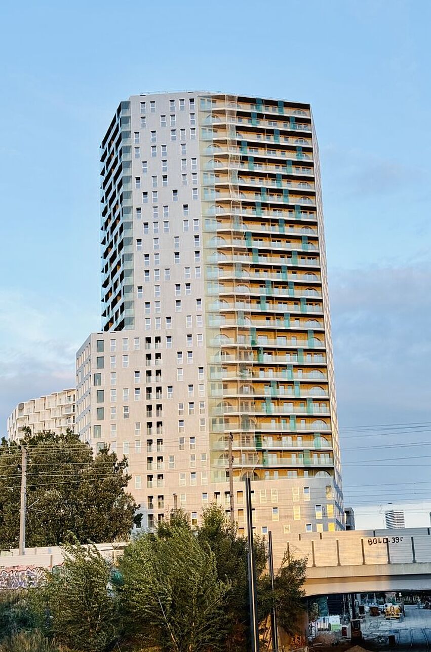 Das Bauprojekt „Schneewittchen“ und der „Loft-Flügel“ in der Taborstraße 111-113 kombiniert Wohnen, Gewerbe und soziale Infrastruktur mit einem starken Fokus auf Nachhaltigkeit und Lebensqualität. Das 30-geschossige Hochhaus bietet 327 durchmischte Wohnungen mit Balkonen oder Loggien, ergänzt durch Gewerbeflächen, Büros und Gemeinschaftsbereiche in den unteren Etagen. Der angrenzende Loft-Flügel zeichnet sich durch flexibel nutzbare Räume mit einer lichten Höhe von 2,80 Metern aus, die eine langfristige Anpassungsfähigkeit sicherstellen.