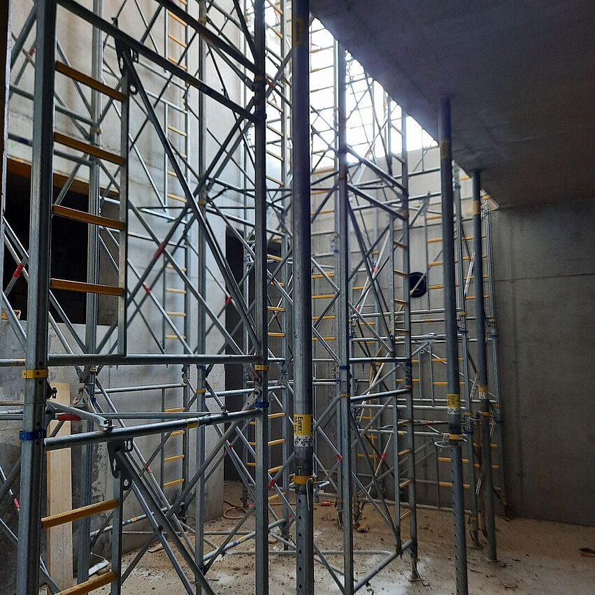 Nachhaltige Mobilität spielt eine zentrale Rolle: Das Angebot an Fahrradstellplätzen übertrifft die Vorgaben und umfasst Plätze für Lastenräder, Fahrradanhänger, Besucher:innen und Beschäftigte. Reparaturstationen und Waschplätze für Fahrräder erhöhen die Benutzerfreundlichkeit zusätzlich.