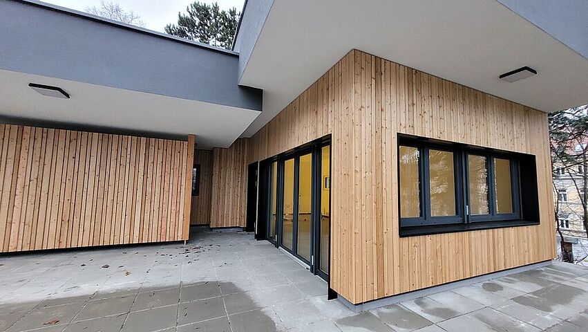 Bei diesem Bauvorhaben handelt es sich um den Neubau eines Garderobengebäudes in 1190 Wien, Krottenbachstraße 53. Am Standort wird das Bestandsgebäude (Kabinengebäude und Kantine) abgebrochen und durch einen Neubau ersetzt. Das Gebäude besteht aus vier Garderoben samt zwei Sanitärzellen (WC und Duschen), einer Schiedsrichtergarderobe mit Sanitärzelle, einem Besprechungsraum, einem Büro, einem Lager, einer Waschküche, einem Zeugwartraum sowie einem Technikraum und einem Behinderten WC. Angrenzend befinden sich die Herren und Damen WCs und eine Kantine mit Küche und Lager. Als Dach wurde ein extensiv begrüntes Flachdach mit PV-Anlage ausgeführt.