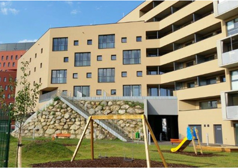 Das Grundstück liegt in exponierter Lage am Gleisdreieck im Anschluß an die Wohnbebauung am Kabelwerk. Ein langgestreckter Baukörper schmiegt sich an die zur Brücke ansteigende Wittmayergasse. In Zusammenhang mit dem westlichen Bauteil bildet er einen Rand in dessen Mitte sich ein höherer Baukörper entwickelt bzw. attraktive urbane Räume entstehen. Eine zweihüftige Anordnung der Wohnungen reagiert auf die Situation: nach Südosten Geschosswohnungen mit einer vorgelagerten durchgängigen Loggienzone, nach Westen- mit Hauptorientierung nach Südwesten dem Straßenraum entlang werden keilförmig Wohntypen entwickelt, die in den unteren Geschossen als Maisonetten ausgebildet sind. Der kompakte Baukörper und die vorgelagerte südwest-orientierte Veranda ermöglichen die Umsetzung als Passivhaus.
