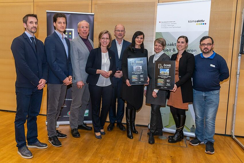 Unter den 31 ausgezeichneten Bauprojekten befinden sich 20 aus dem Programm "klimaaktiv Bauen und Sanieren" und fünf Immobilien, die sowohl eine Gebäudebewertung nach klimaaktiv und ÖGNB besitzen. 14 dieser Vorzeigeprojekte erhielten die klimaaktiv Plakette in Gold. Sie erfüllen damit die höchsten Anforderungen hinsichtlich Energieeffizienz, nachhaltiger Planung und Ausführung, Baustoffen und Konstruktion sowie Komfort und Raumluftqualität. Drei weitere Gebäude wurden mit dem klimaaktiv Silber-Standard und acht mit der Bronze-Plakette ausgezeichnet. Sie zählen damit zu den über 870 Gebäuden in ganz Österreich, die das klimaaktiv Gütesiegel tragen. Weitere sechs Bauprojekte wurden nach dem Bewertungssystem der ÖGNB ausgezeichnet.