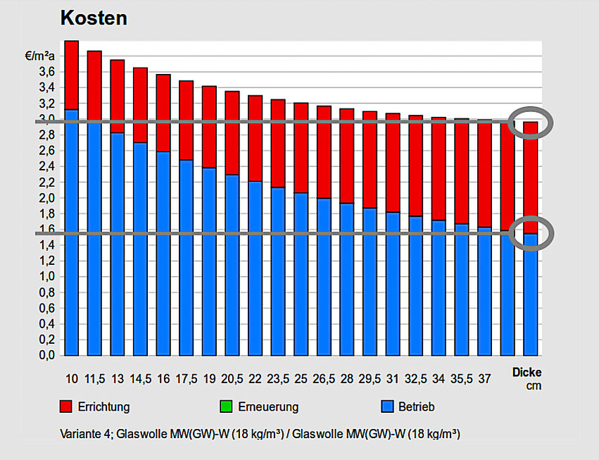Für einen Kostenvergleich der bevorzugten Dämmstoffe eignet sich der über baubook.info zugängliche Amortisations- und Wirtschaftlichkeitsrechner (AWR; https://www.baubook.at/awr/). Mit ihm kann die ökologische und wirtschaftliche Amortisation von Dämmmaßnahmen berechnet werden.
