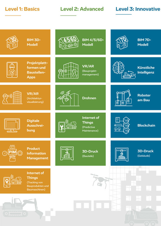 Der Baubranche wird ein geringer Innovations- und Digitalisierungsgrad nachgesagt und immer wieder in Studien attestiert. Die kleinteilige Struktur der Bauwirtschaft und die komplexen Prozesse mit vielen Beteiligten mögen hier hemmend wirken. Natürlich ist Digitalisierung kein Selbstzweck und in jedem Fall die Kosten-/Nutzen-Frage abzuwägen – aber letztlich würde die Branche sehr vom Einsatz digitaler Technologien profitieren: durch gesteigerte Produktivität, bessere und effizientere Zusammenarbeit oder bestimmte Gebäudequalitäten.