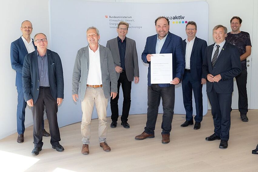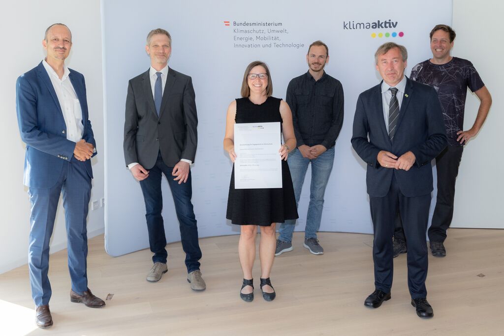 Am Dienstag, den 15.06.2021, erhielten in Korneuburg insgesamt 22 fertiggestellte und 26 geplante Bauprojekte aus Niederösterreich ihre Auszeichnung für energieeffiziente und ökologische Bauweise nach klimaaktiv Standard des Bundesministeriums für Klimaschutz, Umwelt, Energie, Mobilität, Innovation und Technologie (BMK) aus den Händen von Sektionschef Jürgen Schneider.