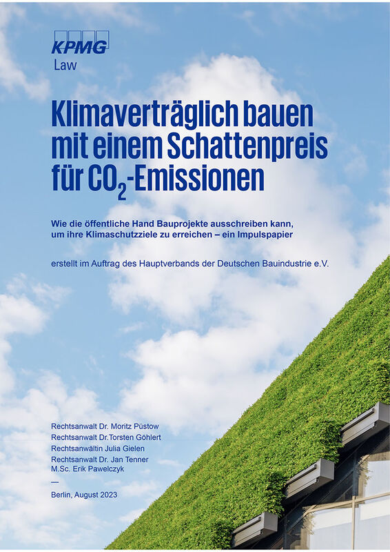 KPMG Law Rechtsanwaltsgesellschaft mbH (HG) Klimaverträglich bauen mit einem Schattenpreis für CO2-Emissionen Wie die öffentliche Hand Bauprojekte ausschreiben kann, um ihre Klimaschutzziele zu erreichen – ein Impulspapier erstellt im Auftrag des Hauptverbands der Deutschen Bauindustrie e.V.