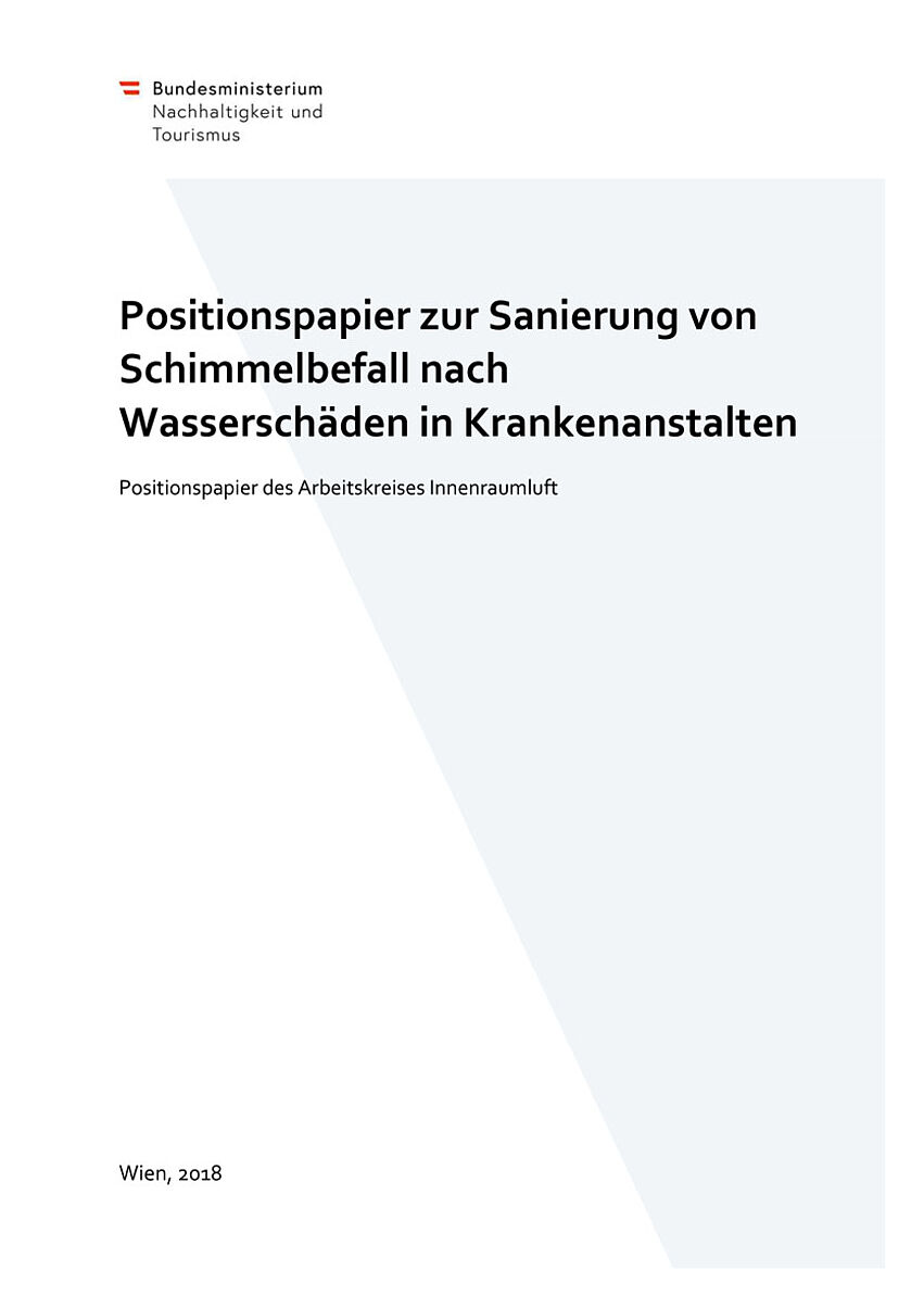 Der Arbeitskreis Innenraumluft am österreichischen Bundesministerium für Nachhaltigkeit und Tourismus (BMNT) hat daher im Dezember 2018 ein Positionspapier "Schimmelsanierung nach Wasserschäden in Krankenanstalten" mit umfangreichen Empfehlungen publiziert, die sich am Stand der Technik und den Anforderungen der Praxis orientieren.