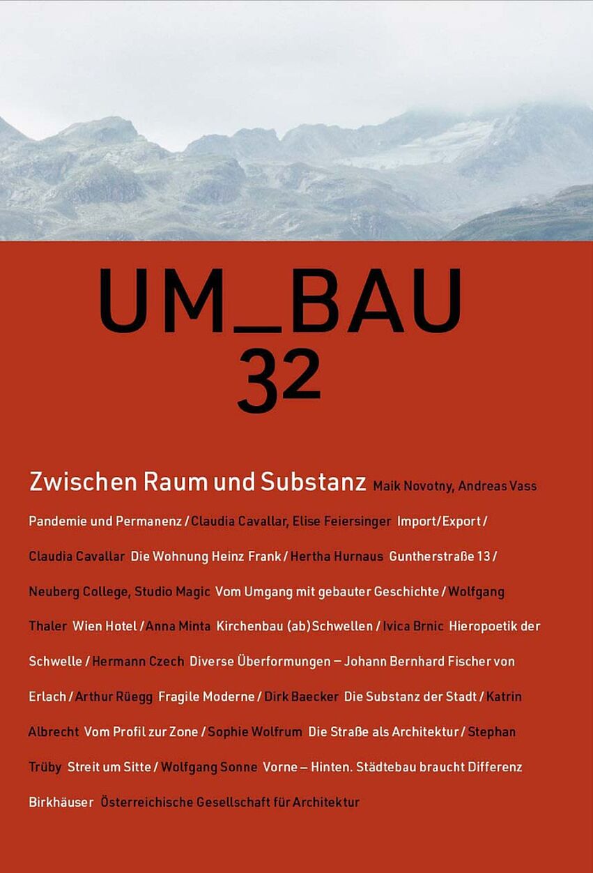 Der UM_BAU 32 ist auch diesmal ein besonderes Zeitdokument, widmet sich darüber hinaus aber auch den Kernfragen der Architektur, was auch in den beiden ÖGFA-Jahresprogrammen 2020 und 2021 „Raumbeziehungen“ und „Substanz“ zu sehen war. Sie bilden die beiden Kapitel des Buches, eingeleitet von einem zusammenfassenden Beitrag der Redaktion.