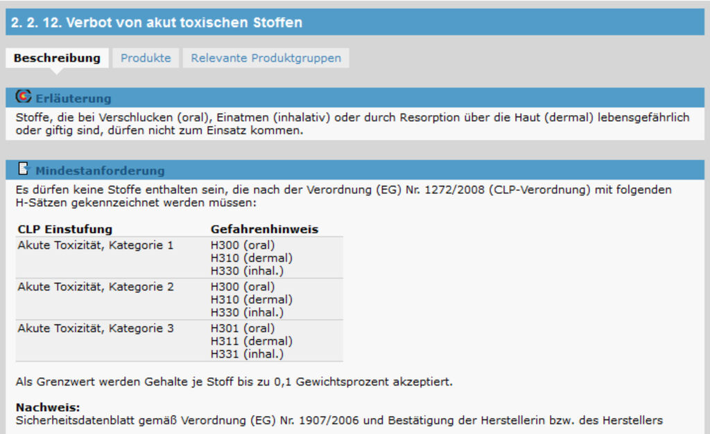 Die ÖkoBauKriterien bestehen aus Erläuterungstext, Mindestanforderung und der Vorgabe für die Nachweisführung (Abb 1). Sie werden digital in der online-Plattform https://www.baubook.info/oea/ verwaltet und können über eine bestehende Schnittstelle in AVA-Software eingelesen werden.