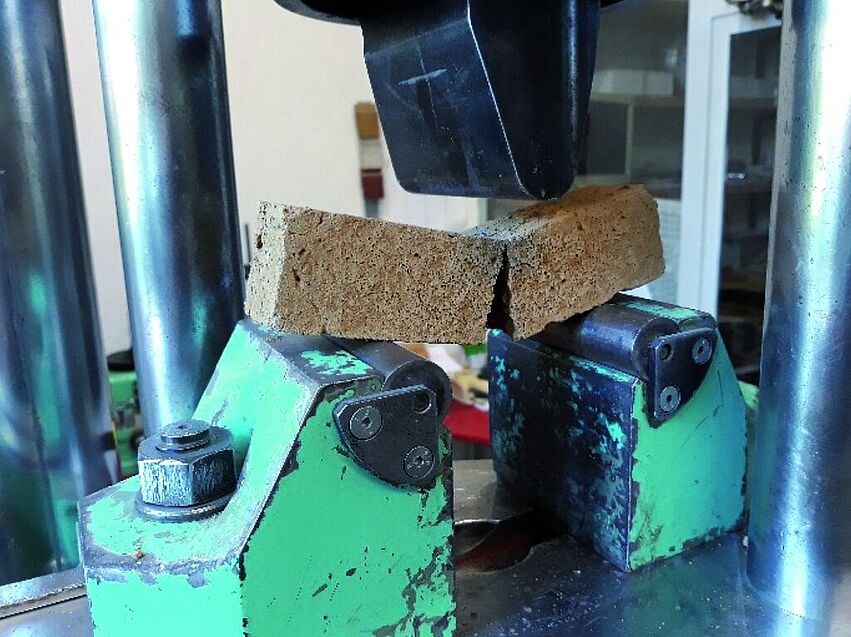 Seitens des BTI wurden Schwindmaß, Druck- und Biegezugfestigkeit der Proben nach deren Aufbereitung für die Putzherstellung geprüft (Abb. 8).
