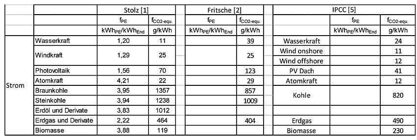 - Stolz, Frischknecht: Umweltkennwerte und Primärenergiefaktoren von Energiesystemen [1]