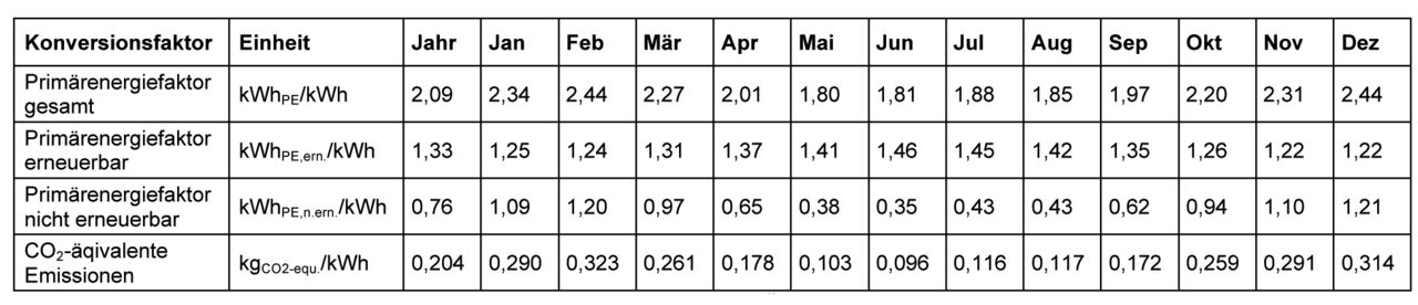 Im Rahmen der Studie wurden daher monatliche Primärenergiefaktoren und CO2eq-Faktoren ermittelt. Dabei wurden zwei Zeitperioden zugrunde gelegt: