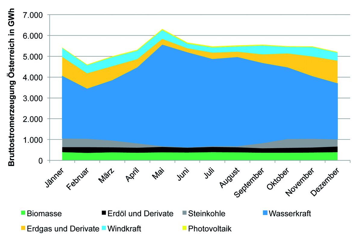 Aus der österreichischen Bruttostromerzeugung, abzüglich dem Strombedarf für den Netzbetrieb, sowie den Importen und Exporten konnte der monatliche Anteil der Inlandstromerzeugung am Endverbrauch Österreichs abgeleitet werden.