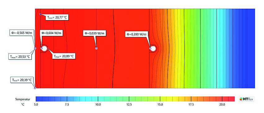 Die Messungen werden mit einem eigens entwickelten Verfahren mit einer Gebäudesimulation gekoppelt. Dies gestattet einerseits eine wesentlich umfangreichere Analyse und Interpretation der Messergebnisse und andererseits eine dynamische Echtzeit-Steuerung des Versuchsablaufes („hardware-in-the-loop“). Auf diese Weise kann etwa das Verhalten unterschiedlicher Konstruktionsweisen im Prüfraum simuliert werden und - beinahe auf magische Art und Weise – das reale Verhalten des Prüfraums per Knopfdruck beispielsweise von Stahlbeton-Bauweise auf Leichtbauweise umgeschaltet werden.