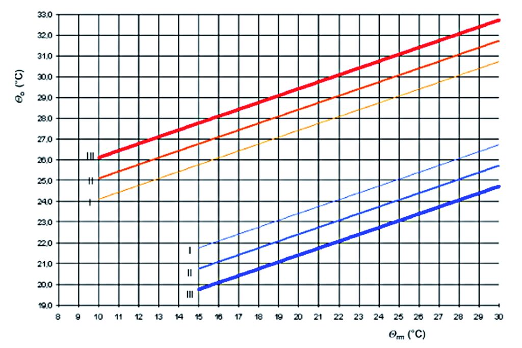 Eine wichtige Grundannahme ist, dass das Empfinden von thermischem Komfort nicht mit dem Außenklima zusammenhängt. Die Bewertung hat in der EN ISO 7730 [DIN EN ISO 7730] ihren Niederschlag gefunden und wird auch als „rational approach“ bezeichnet. Das Modell ist weit verbreitet und wird in der Gebäudeplanung und -simulation eingesetzt, insbesondere bei der Klimatisierung von Gebäuden. Dieses Behaglichkeitsmodell hat auch Eingang in die EN ISO 16798-1 [DIN EN ISO 16798-1] gefunden und ist Standardmodell für vollklimatisierte Räume/Gebäude.