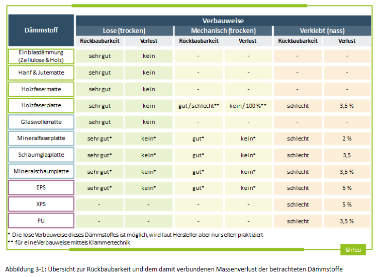 Das ifeu (Institut für Energie- und Umweltforschung Heidelberg) und natureplus bewerteten die gängigsten Dämmstoffe insbesondere im Hinblick auf mögliche zukünftige Entsorgungswege der Dämmstoffe (von der „Wiege bis zur Bahre“) im Projekt „Ganzheitliche Bewertung von verschiedenen Dämmstoffalternativen“