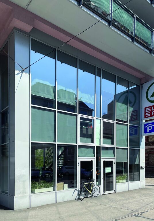 sprünglich als großzügiger Friseursalon konzipert, danach eine Zwischendecke eingezogen und nun als technisches Büro genutzt. Das Objekt ist nur über die oberste Geschoßdecke an die darüberliegende Wohnhausanlage verbunden und verfügt über eine 50 m² südlich ausgerichtete Glasfassade. Die höhere Belegung, fehlende Querlüftungsmöglichkeiten sowie nicht vorhandene außenliegende Beschattung führen trotz Klimatisierung und Kühldecke zu unangenehmen Arbeitsbedingungen. Zur Wahl stand nun eine konventionelle Außenbeschattung oder eine Beschattung durch Begrünung.