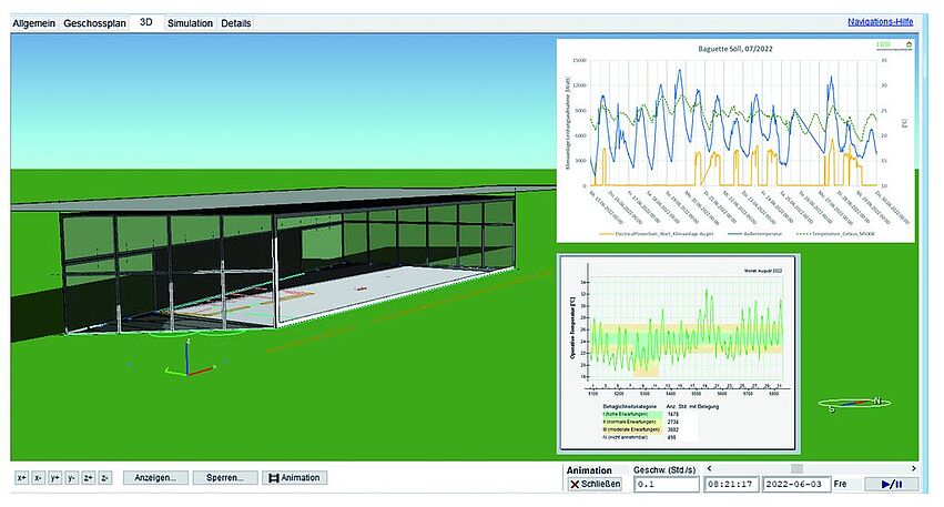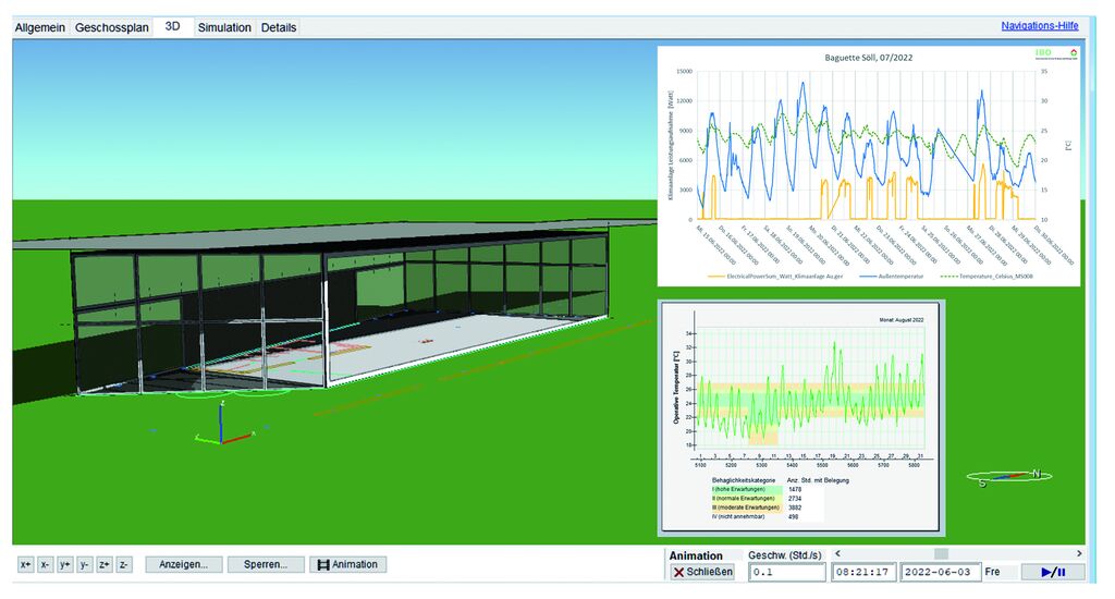 Das IBO wird für dieses Projekt die Behaglichkeit vor und nach der Begrünung (ÖNORM EN 16798-1, Nachfolgenorm der EN 15251) sowie den Kühlenergiebedarf mit thermischen Gebäudesimulationen berechnen und bewerten.
