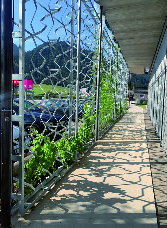 Als Begrünung kommen trog- und bodengebundene Systeme zum Einsatz und im Falle von Demonstrationsprojekt 1 (M-Preis-Filiale Söll) auch unterschiedliche Rankgitter (architektonisch anspruchsvoll und low budget Variante). Zusätzlich kommen am genannten Standort auch in vordefinierten Bereichen mehrere Pflanzen zum Einsatz (z.B. Blauregen, Hopfen etc..), deren Wachstum und Einfluss z.B. auf den Strahlungsdurchgang untersucht wird.