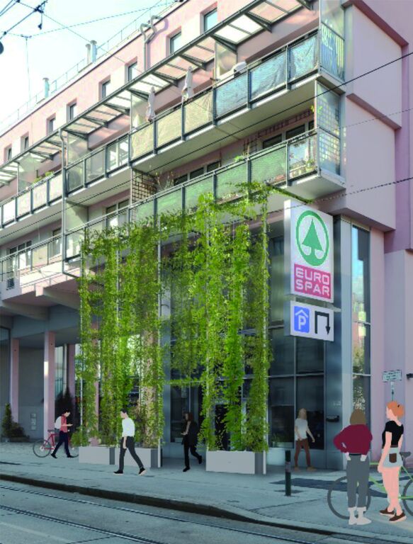 Wissenschafter:innen gemeinsam mit Archtekt:innen, dem Innovationslabor Grün statt Grau und einer Supermarktbetreiberin entwickeln vertikale Begrünungsvarianten zur Bestandsergänzung, zur Bestandssanierung und für den innerstädtischen Neubau.