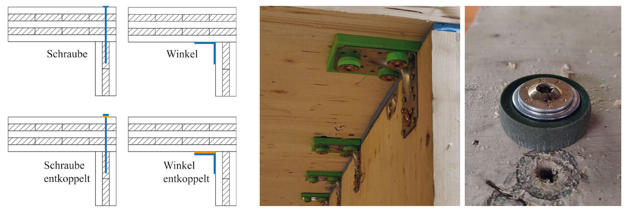Ein wesentlicher Parameter bei der schallschutztechnischen Planung von Gebäuden und zur Vorhersage der dafür erforderlichen flankierenden Übertragung von Tritt- und Luftschall nach der Normenreihe ÖNORM EN ISO 12354, ist das Stoßstellendämm-Maß Kij. Die Methode selbst wurde für den mineralischen Massivbau entwickelt, liefert jedoch, wie verschiedene Forschungsarbeiten nachwiesen, auch für den Massivholzbau valide Ergebnisse, sofern die erforderlichen Eingangsdaten, wie das Kij, verfügbar sind. Für diese gibt es allerdings noch keine Quelle, die eine ganzheitliche Sicht auf die am Markt verfügbaren elastischen Lager und Verbindungsmittel, sowie eine Kategorisierung hinsichtlich ihrer Wirksamkeit erlaubt.