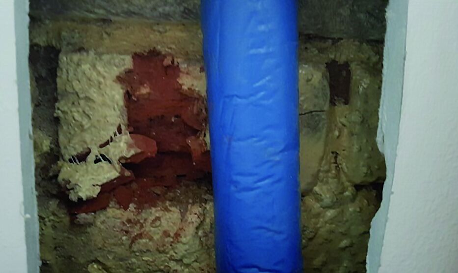 In den darauffolgenden Monaten wurden die bereits zuvor empfohlenen Sanierungsschritte mit der aluminium-kaschierten Tapete durchgeführt, wobei besonders auf die Herstellung einer luftdichten Ebene zwischen den kontaminierten Wänden und der Raumluft geachtet werden musste. Insbesondere waren diverse Wegigkeiten zwischen Geruchsquelle und Raumluft, wie beispielsweise Elektroleitungen und Anschlüsse, sorgfältig abzudichten.