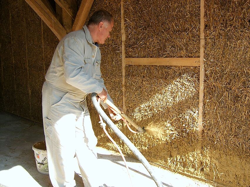 Gebäude sind für 40 % des Energieverbrauchs und 36 % der Treibhausgase in der EU verantwortlich [1]. Während der Energiebedarf von Gebäuden in der Betriebs- und Nutzungsphase im Laufe der Jahre stark reduziert werden konnte, nimmt der Anteil der Errichtung am Energiebedarf aufgrund aufwendigerer Konstruktionen und höheren Materialeinsatzes stetig zu [2]. Die Ökologie der Konstruktion gewinnt dadurch immer mehr an Bedeutung, was in den letzten Jahrzehnten zu einer Wiederentdeckung des Baustoffs Stroh geführt hat. Die Anzahl der Gebäude in Strohbauweise in Europa steigt deswegen jährlich weiter an. Bei der Errichtung von Strohballengebäuden besteht eine übliche Vorgehensweise darin, die Baustrohballen auf der Innenseite direkt mit Lehm zu verputzen. Ökologisch gesehen ist diese Kombination im Vergleich zu konventionellen Bauweisen hervorragend. [3]