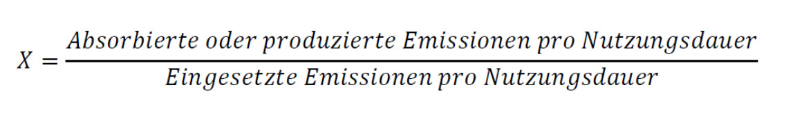 Die beiden Systeme Gründach und Photovoltaik erfüllen verschiedene Funktionen, welche im Laufe des eingebauten Zustandes Emissionen und Schadstoffe reduzieren können. Eine Hilfestellung zur Entscheidungsfindung könnte mit der Kennzahl X berechnet werden (siehe Grafik).