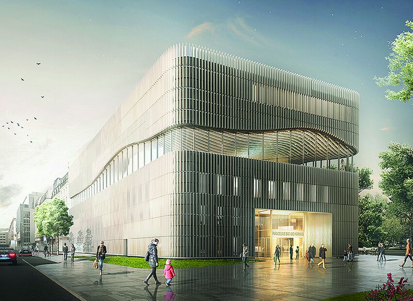 Das Paracelsusbad, benannt nach einem Arzt aus dem 16.Jahrhundert, gibt es in der Salzburger Innenstadt seit 1956. Gemeinsam mit dem Kongresshaus, einem Hotel und dem Kurmittelhaus sollte es in den 50erJahren die Landeshauptstadt als Kur- und Kongress-Stadt positionieren. Im November 2016 wurde das alte Bad geschlossen, 2017 begannen die Abrissarbeiten, um Platz für den von Berger+Parkkinen Architekten geplanten Neubau mit höchsten Ansprüchen an Nachhaltigkeit und Energieeffizienz im Zentrum der Altstadt zu schaffen. Es handelt sich dabei um das größte Einzel-Bauvorhaben der Stadt Salzburg in diesem Jahrzehnt, ein visionäres Projekt im Herzen der historischen Altstadt als wichtiges Element modernen urbanen Lebens. Die Stadt Salzburg investiert 59,5 Mio. Euro. Gerechnet wird mit 200.000 Besuchern pro Jahr, die Eröffnung ist für 2019 vorgesehen.