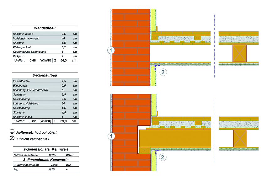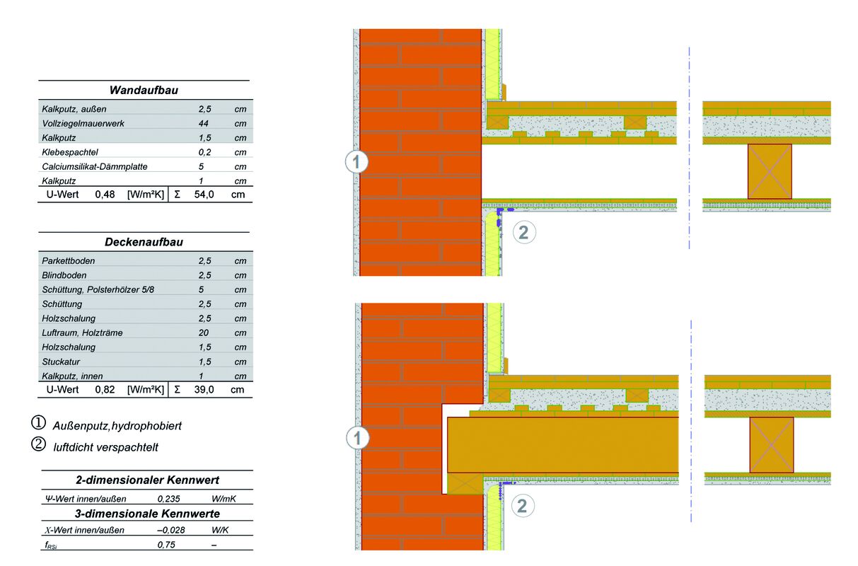 präsentiert. Abb. 7 bis Abb. 9 zeigen exemplarisch ausgewählte Details mit Innendämmung für bis 1918 errichtete Gebäude.