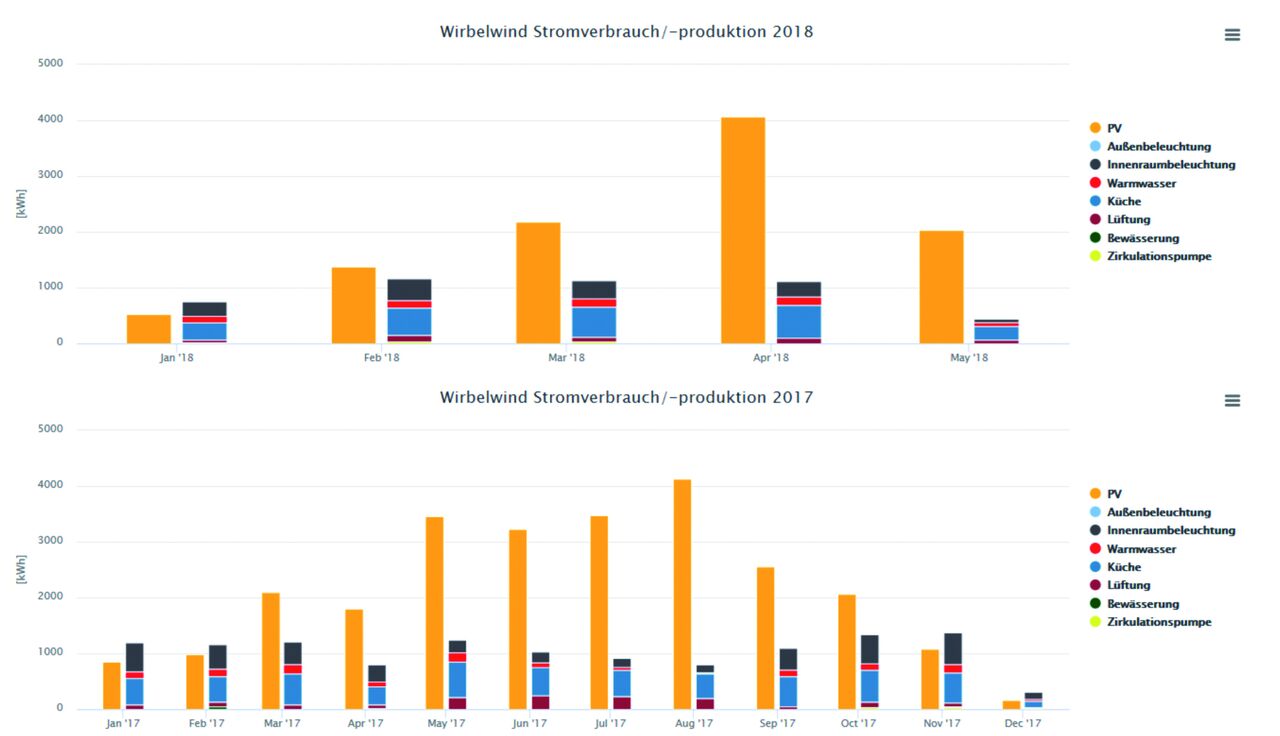 Das IBO hat mittlerweile mehrere Monitoring Projekte umgesetzt und kann – basierend auf den Erfahrungen und Entwicklungen – die passende Sensorik, Auswertealgorithmen und Visualisierungen für Energie-, Bauteil- und Komfortmonitoring anbieten. Kostengünstige Lösungen für Hardware, automatisierte Meldungen zur aktuellen Gebäude-Performance, aussagekräftige Visualisierungen zur Dokumentation ermöglichen eine effiziente Inbetriebnahme und Betriebsführung. Damit können auch kleinvolumige Projekte effizient begleitet werden, wenn in der Planung die benötigten Messpunkte und -geräte sorgfältig bestimmt werden. Monitoring für Inbetriebnahme und Betriebsführung hat in den Gebäudezertifizierungssystemen Einzug gefunden, auf nationaler Ebene mit dem klimaaktiv Zertifizierungssystem „klimaaktiv in der Gebäudenutzung“. Der Kindergarten Wirbelwind wurde mit dem besonders ambitionierten klimaaktiv Gebäudestandard zertifiziert und ausgezeichnet.