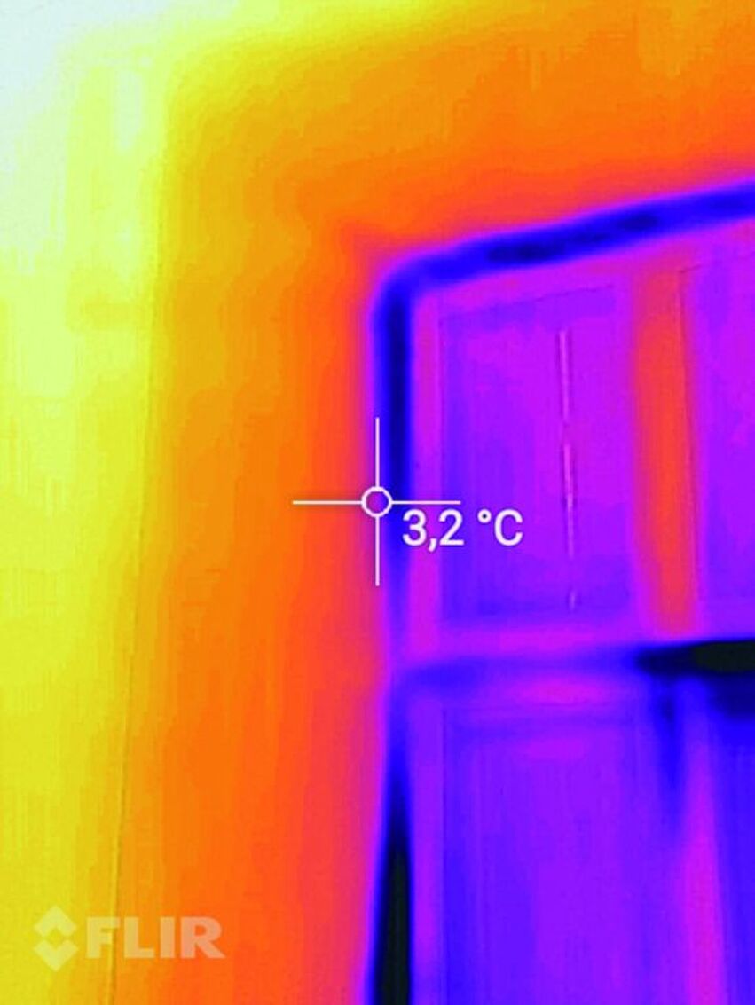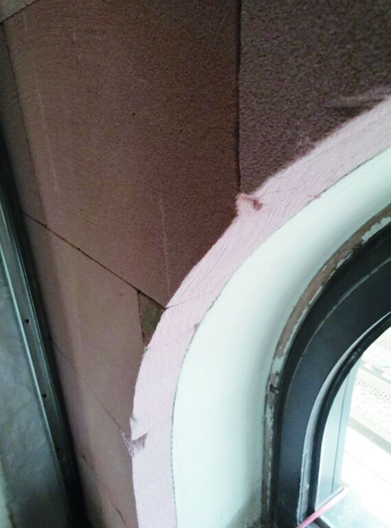 Um objektspezifisch auf im Bauablauf auftretende weiterführende Fragestellungen – wie dies bei Sanierungen die Regel ist – rasch reagieren zu können, wurde bei der Applikation der Innendämmung die Örtliche Bauaufsicht durch eine „baubegleitende Qualitätssicherung Innendämmung“ unterstützt. Dazu gehörten die Beurteilung des Musterzimmers, regelmäßige Objektbegehungen zur Qualitätssicherung Innendämmung ca. alle 2 Wochen sowie ein baubegleitendes Feuchte-Monitoring. Wobei sich das Feuchte-Monitoring nicht auf die Innendämmung, sondern auf in der Bauphase eingebrachte Baufeuchte und die Vermeidung von ungünstigen, zu Schimmel an Oberflächen führenden Feuchtezuständen bezog.Da die Applikation der Innendämmung raumseitig erfolgte, ist man grundsätzlich etwas unabhängiger von den klimatischen Randbedingungen (Abbildung 3) als bei außen zu applizierenden Wärmedämmungen. Ungeachtet dessen sind die vorgegebenen Grenzwerte hinsichtlich der Verarbeitung zu beachten. Die Ausführung der Innendämmung in der kalten Jahreszeit erlaubte eine Qualitätssicherung via Thermografie mit welcher insbesondere der luftdichte Anschluss ans Fenster beurteilt werden konnte. Abbildung 5 und Abbildung 6 zeigen beispielhaft die durch einströmende kalte Luft reduzierten Oberflächentemperaturen in Bereichen wo der luftdichte Anschluss mangelhaft ausgeführt wurde und nachgebessert werden musste.Die Applikation hoher raumseitiger Dämmdicken wie bei diesem Objekt erfordert einen ausreichenden Schlagregenschutz der Fassade. Die Putzfassade wurde gewissenhaft überarbeitet bzw. erneuert (Abbildung 4).