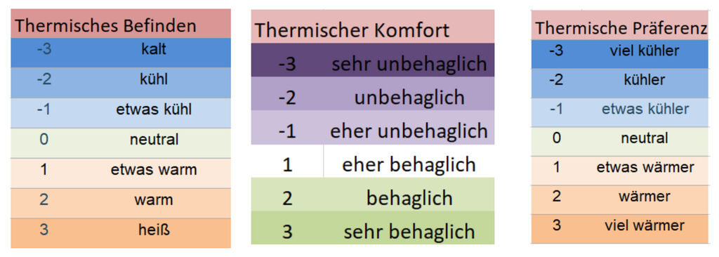 Die Auswertungen haben sehr interessante Ergebnisse gebracht. Das thermische Befinden, der thermische Komfort, die thermische Präferenz, die Bekleidung usw. wurden mittels Fragebogen erhoben.