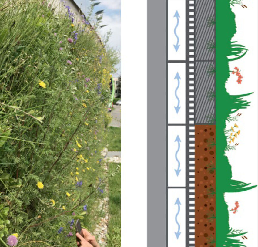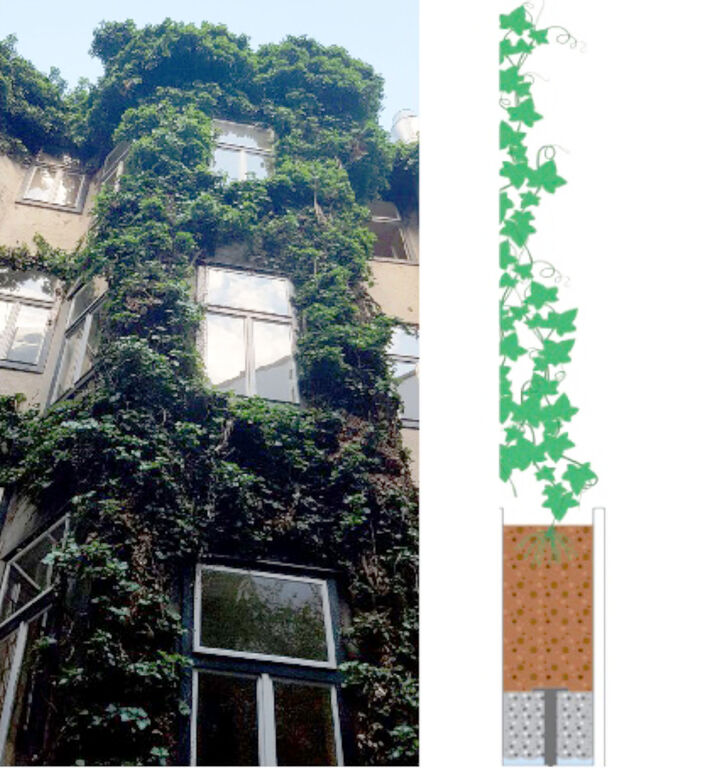 Klimawandel und deutlich höhere städtische Temperaturen sind auch in Wien in aller Munde. Die grünen Wände versprechen Besserung, denn Fassadenbegrünungen beeinflussen das Mikroklima durch eine erhöhte Verdunstung von Wasser und eine entsprechende Abkühlung der nahen Umgebung. Die Pflanzen binden durch die Fotosynthese Kohlendioxid und reichern die Luft mit Sauerstoff an. Zudem halten sie schädliche Luftschadstoffe und Staub durch das Blattwerk fest. Begrünte Wandbereiche bieten eine zusätzliche Dämmwirkung. Sie schützen im Sommer vor einer starken Aufheizung und helfen im Winter Heizkosten einzusparen. Richtig angelegt, können vertikale Begrünungen vor Schlagregen und UV-Strahlung schützen und die Lebensdauer einer Fassade erhöhen. Derartige Bepflanzungen können zum Lärmschutz beitragen und erhöhen die Biodiversität.